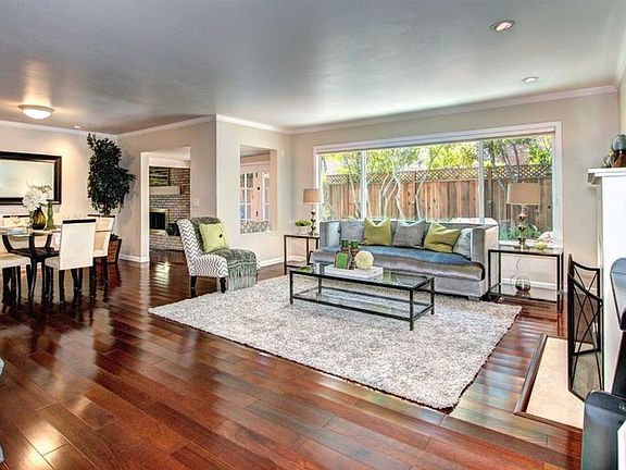 Beautifully remodeled with a fabulous location in the Los Altos school district close to Oak Elementary & Mt View High. Spacious living spaces combine with a wonderfully landscaped yard for the best of indoor-outdoor living. Lovely curb appeal & formal entry with natural rosewood hardwood flooring which runs throughout most of the home. Remodeled kitchen has Shaker-style cherry cabinetry with Espresso stain finish, granite slab counter tops, informal eating area, & natural stone tile flooring. Separate family room offers a warm fireplace, & high cathedral, wood-beamed ceiling. Master suite offers 2 closets, & a spa-inspired bath with dual sink vanity & designer-tiled shower with clear enclosure. 4th bedroom used as an office, & with a nearby half bath works well for guests or au pair. Other quality features include dual pane windows, raised panel interior doors, inside laundry area, recently replaced furnace/driveway/hardscape, fenced utility yard, & 2-car attached garage.