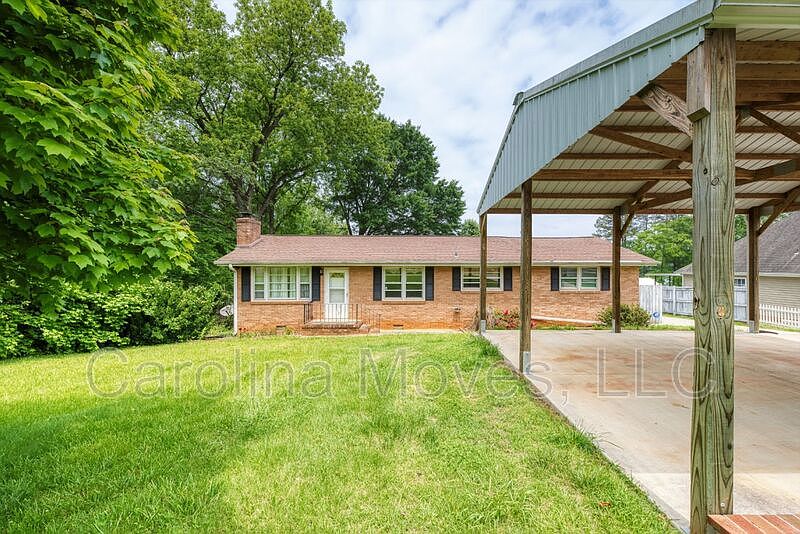 LAKEFRONT PROPERTY!! This 2bed 1bath home is located on Lake Cunningham in Greer! Upon entry you'll be greeted with a custom map wallpaper and a stone fireplace. The kitchen features granite countertops and stainless steel appliances including a gas stove, refrigerator, dishwasher and disposal. A split floor plan allows for privacy in both bedrooms which share a centrally located bathroom is a tub/shower combo that features beautiful subway tile. The property features a 600 square foot detached garage with an expansive workshop, two carports, a long paved driveway, and multiple storage sheds! End your evenings around the firepit or on your own private dock!