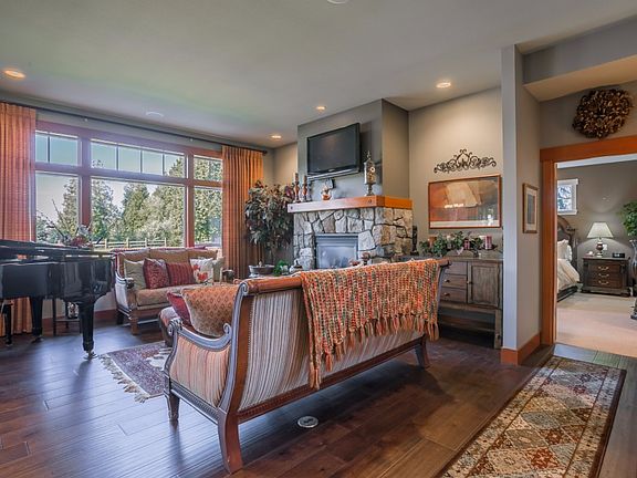 Picture Perfect Country Estate! Situated on 2+ acres w/immaculate landscape & gardens. Enjoy warm summer evenings on the expansive patio. Relax in 2 levels of spacious living: open floor plan, vaulted ceilings, upscale finishes. Luxurious master on main floor w/ oversized closet, walk-in shower & jetted tub. Gourmet kitchen w/ tons of counter & storage space, stainless appliances, newer hardwoods, huge entertainment/media room & more! Separate 1344 square foot shop with 12' doors & RV parking.