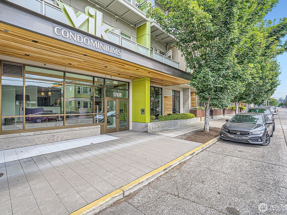 Modern Oasis in the Heart of Ballard! Welcome to this stunning main-floor condo, where soaring ceilings and an open-concept design create a spacious and inviting atmosphere. Step outside to enjoy 440+ sqft of private patio space, perfect for relaxing or entertaining. Large bedroom features a walk-in closet and convenient access to the full bathroom. Deeded parking spot awaits in a secure garage, ensuring both convenience and peace of mind. Building offers top-notch amenities, including rooftop deck with panoramic views, secure fob entry, concierge service, fitness center, bike storage, dog run, and wash station. With a Walk Score of 97, you're moments from restaurants, grocery stores, boutique shops, parks, nightlife, and entertainment.
