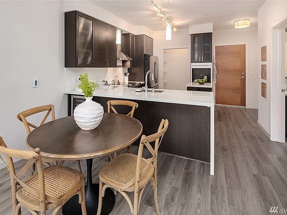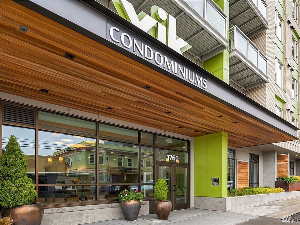 This super slick condo, with 1 bedroom PLUS den, is at the doorstep of some of the coolest spots in Seattle. You'll love the stylish decor w/slab Quartz counters, stainless appliances, 9' ceilings, wine cooler & A/C port. Party or walk your dog on FAB Rooftop Deck w/Fire Pit, BBQ Grills, and gorgeous views! Concierge M-F, convenient Fitness Center, designated garage parking, bike storage, and NO RENTAL CAP! Stacked W/D. With Walk Score of 97, you'll not need a car to taste the best of Ballard!!