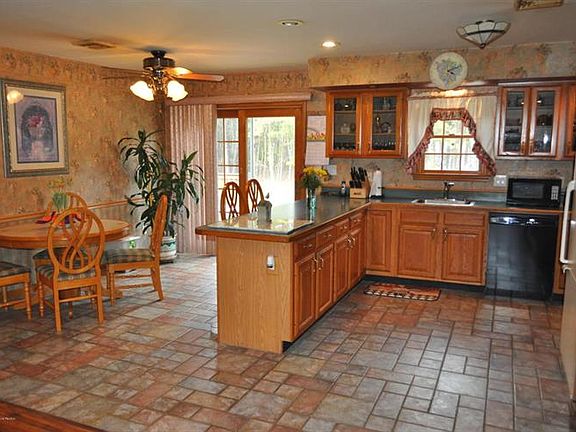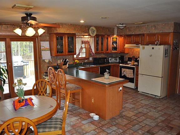 Well kept and spacious 3 bedroom 2 bath ranch with an oversized 2 car garage. Large eat-in kitchen with breakfast bar has Oak cabinets and stone floor. Sliders lead to the deck with hot tub and 1 acre property. The sprinkler system with well keeps the green lawn lush. Kitchen is open to the family room with a wood burning fireplace, and bow window to let in plenty of natural light. Laundry room has shelves for extra storage. 3 Generous sized bedrooms with large lighted closets and ceiling fans. The master has sliding doors which lead to the back yard and deck. Master bath has a walk in shower and separate dressing area. House has natural gas heat and central A C. Large horseshoe driveway with extra parking. Attic has plenty of storage with plywood floor. Don't miss out on this one!