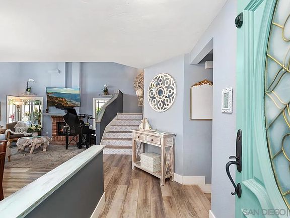 Absolutely stunning 3BD + Den/ 3BA beachy chic Flair Encinitas residence oozing with character and embraced in positive energy and warmth. Immediately upon entry you are welcomed by a peaceful color palette, gorgeous luxury vinyl plank floors that extend throughout the home, and designer touches in all the right places. Expansive 2-story vaulted ceilings in the open family room with fireplace offers plenty of natural light and areas to relax or play. White shaker cabinetry in the kitchen (see supplement)