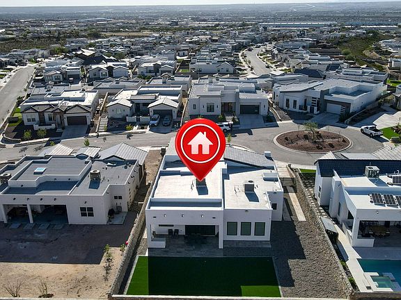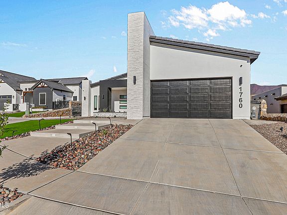 Welcome to this stunning custom-built residence nestled in the highly sought-after Cimarron Canyon community. Completed in 2022 and situated on a quiet cul-de-sac, this thoughtfully designed home offers the perfect blend of elegance and modern comfort. Featuring 4 spacious bedrooms, 2.5 bathrooms, and a versatile flex room. The primary suite is a true retreat, boasting a spa-inspired en-suite bathroom with a freestanding soaking tub, double vanities, and refined finishes. At the heart of the home, the open-concept living area flows seamlessly into a gourmet kitchen equipped, custom cabinetry, quartz countertops, marble backsplash, expansive walk-in pantry. Additional highlights include: Dedicated laundry room with built-in cabinetry, quartz folding counter, and a convenient mop sink/dog wash station; Extended covered patio with tile flooring and ceiling fans; Four-car tandem garage with ample storage; Tankless water heater for energy efficiency; Security system, and exterior lighting.
