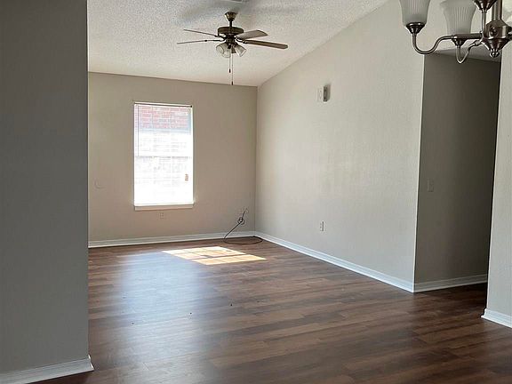 Near downtown, 3 bedroom 2 full baths, new 2025 wood look flooring. Open floor plan, breakfast bar, living dining combo, washer dryer hookups off kitchen, solid surface stove. Master bedroom has door to back yard, walk in closet, pedestal sink in master bath.