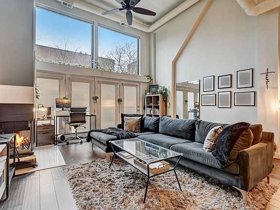 Lincoln Park's Terra Cotta Commons gated community awaits you! This unique penthouse duplex up boasts nearly 1,100 sqft across 2 levels + private outdoor deck! Price includes 1 dedicated gated parking spot for security and convenience. Begin to wind down as you peacefully drive through the gate to your dedicated parking spot or ride your bike to the bike storage beside your personal storage cage. Feel secure knowing your packages can be easily received into the large mail room. Stroll into your new home and be amazed by the 15 ft tall ceilings with sky high windows that let rays of warm sun light through the gorgeous atrium of trees. Modern dark wood flooring throughout with the exception of soft carpeted stairs. During winter, get cozy with your wood burning gas starter fireplace. The inviting 1st floor is an open concept floor plan with combined kitchen and living room, very large utility room (washer and dryer included), large coat/storage closet, and 1/2 bath. Kitchen includes bar height seating and stainless steel appliances. On the 2nd level you will find an absolutely huge bedroom, towering ceilings, and 2 closets for your Chicago wardrobe. Relax in your full ensuite bath. Enjoy all day sun thanks to a skylight and large windows. You truly only need electric lights at night in this home! Ascend one more small stair case in the bedroom to be transported to your private deck oasis. For even more space and downtown skyline views just head over and up to the Terra Cotta common roof deck. Walk to Jewel Osco, Aldi, Starbucks, Hexxe Coffee, Menards, Costco, Wrightwood Park, and the river walk. Access I-90/94 in moments. Easy access to Ashland bus, Metra, and DePaul L trains as well. $455/month assessment includes cable/internet. Healthy and well run HOA. Investor friendly for 12 month or longer rentals, yet has 87.5% owner occupied ratio. Seller is a licensed designated managing broker. FIRST SHOWINGS 7-13-24 from 11-12:30pm!