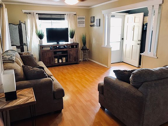 A little ray of Sunshine in beautiful Las Cruces sums up this home. Lots of care and remodeling completed to this residence including refrigerated air, new sewage line, fresh paint, laminate and tile floors throughout to name a few! Some finishing touches needed throughout to make this a complete dream home. The residence greets you with an open, natural light filled living room with new laminate wood flooring, wood column accents and stone accent wall. This then leads into a nearly finished tile floored kitchen that comes with a dishwasher, epoxy counter-tops, and roomy sink. Kitchen also comes with refrigerator, stove, microwave and smoothly transitions into a spacious dining room fitted with a fireplace and breakfast bar. Main bedroom comes with two ceiling fans, French doors opening to patio and bathroom with custom cedar wood closet! Spacious second bedroom with walk in closet, built in bookshelves and ceiling fans. 3rd bedroom comes with French doors laminate wood flooring and easy access to