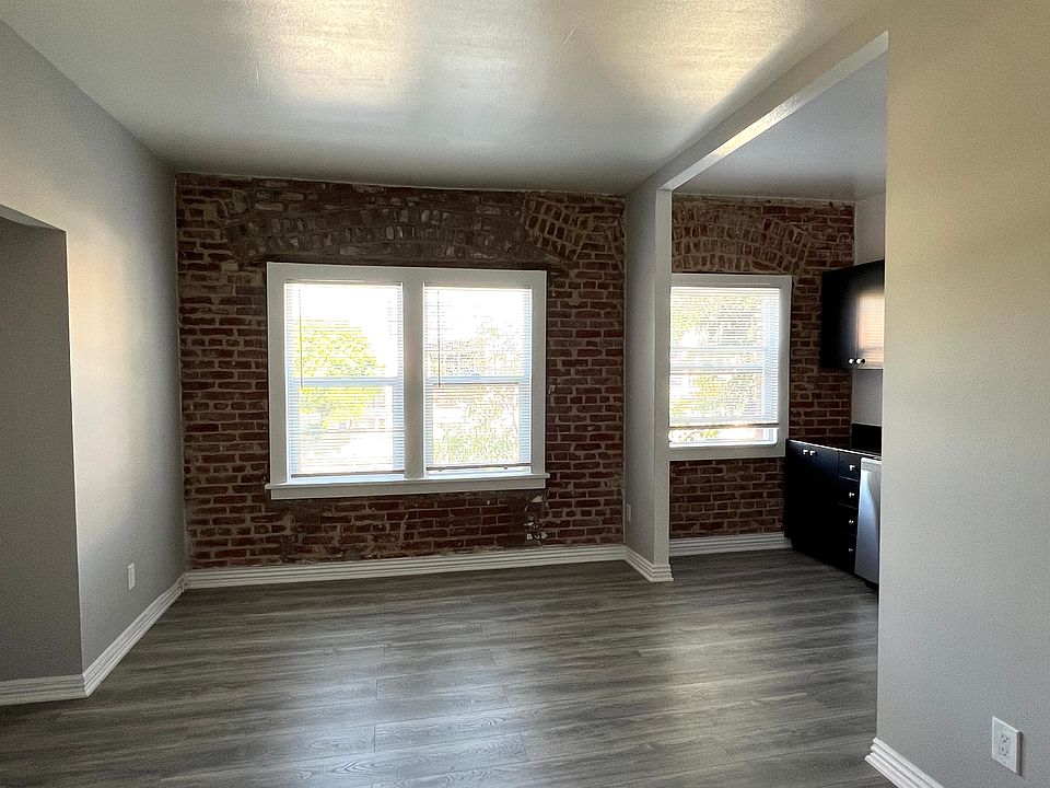 Beautiful and recently renovated apartment! Fourth floor corner unit ( top floor ). New hardwood floors, stainless steel appliances, central air conditioning, dishwasher and exposed brick walls! Laundry on site. Quiet building. Onsite manager. STREET PARKING ONLY: There are several monthly parking lots located close to the building that offer monthly spots for $150-$250 per month. Tenants also qualify for limited permit parking through the city for $35 per year. Located in the center of Hollywood walking distance to many restaurants, nightlife and hiking trails. We are less than a 10 minute walk to the metro subway station. LEASE TERM: 12 months. Tenants automatically go month to month after lease ends. QUALIFICATIONS: Applicants must have a credit score of 650 or above and monthly income that is at least 2.5 times the rent per month. CO-SIGNERS: Will be considered but must be California residents. UTILITIES INCLUDED: Hot water and trash collection. MOVE IN COSTS: First month's rent plus deposit which is the same as the rent amount. RENT CONTROLLED! Application Fee: $35
