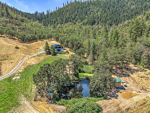 Sprawling 176-acre ranch less than two miles from Applegate boasts serenity and convenience. This 3 bed, 2 bath ranch home overlooks a versatile farm set up for multiple land uses, commercial agriculture and ranching with epic water rights! Made up of 3 tax lots—162.76 acres zoned WR with a large trail network connecting to thousands of acres of BLM land, perfect for hunting, motocross, horseback riding and more. The 12.96-acre EFU-zoned lot includes a 2,800 sq ft 2-story barndominium with stables below and a 1,400 sq ft finished office and storage space above, complete with kitchenette and permitted bath. Property includes 2 barns, 2 ponds, paddocks, orchard, commercial greenhouses, guest cabin, and more!