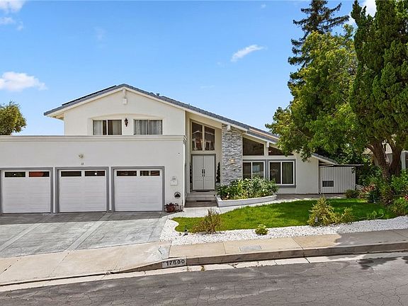 Look no further... Spectacular views over the San Fernando Valley from this pristinely kept home! You will fall in love at first glance. This rare open floor-plan with circular flow is highly sought after. Located in one of Granada Hills most desirable neighborhoods. The home benefits from a quiet street and great schools. The completely remodeled home is truly breathtaking. Curb appeal is enhanced by a stack stone fascia, grass area and mature lush landscaping. The front (spacious) patio from bedrooms two and three create a place to relax with mountain views. The master suite has its own patio with valley views and walk-in closet with built-ins. The master bathroom has a freestanding tub and frameless glass shower with rain head and body jets. All bathrooms have been elegantly remodeled. Perfect for guests or home office is a 4th bedroom downstairs with an adjacent bathroom. The remodeled kitchen features Quartzite counters, tile backsplash, white cabinetry with glass showcase doors and stainless appliances. Interior highlights include; open beam vaulted ceilings, laminate wood floors, marble tiled fireplace with marble hearth in the large family room, solid wood raised panel doors, huge living room for entertaining, separate formal dine, upgraded light fixtures, newer windows and sliders, wrought iron stairway with wood handrail, crown molding and recessed lighting. You will be on vacation every day in the oasis backyard! Paid Solar - Sparkling pool with Baja bench and dual spillways cascade into the 2020 remodeled fiberglass pool - Trex deck extends the yard - Vinyl deck off kitchen - Concrete white tile patio - Outdoor lighting front and rear - Terrace hillside with stairs - Stamped concrete driveway - 3 car garage - Tile roof