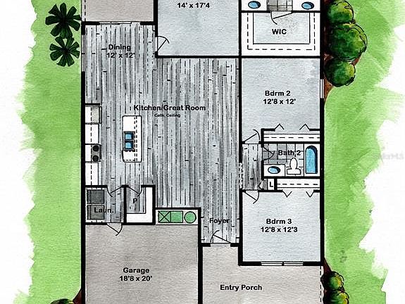 Neutral pleasing colorsLight luxury granite countertopsOpen floor planCarpet in the bedroomsCovered front porchInside laundryTile in bathrooms