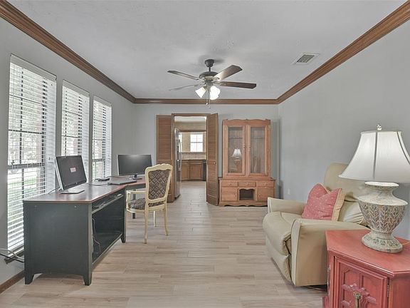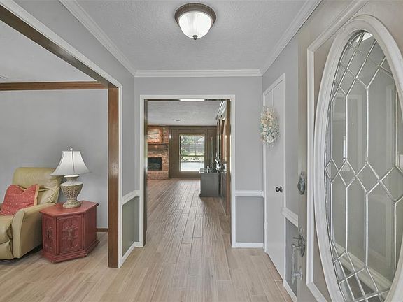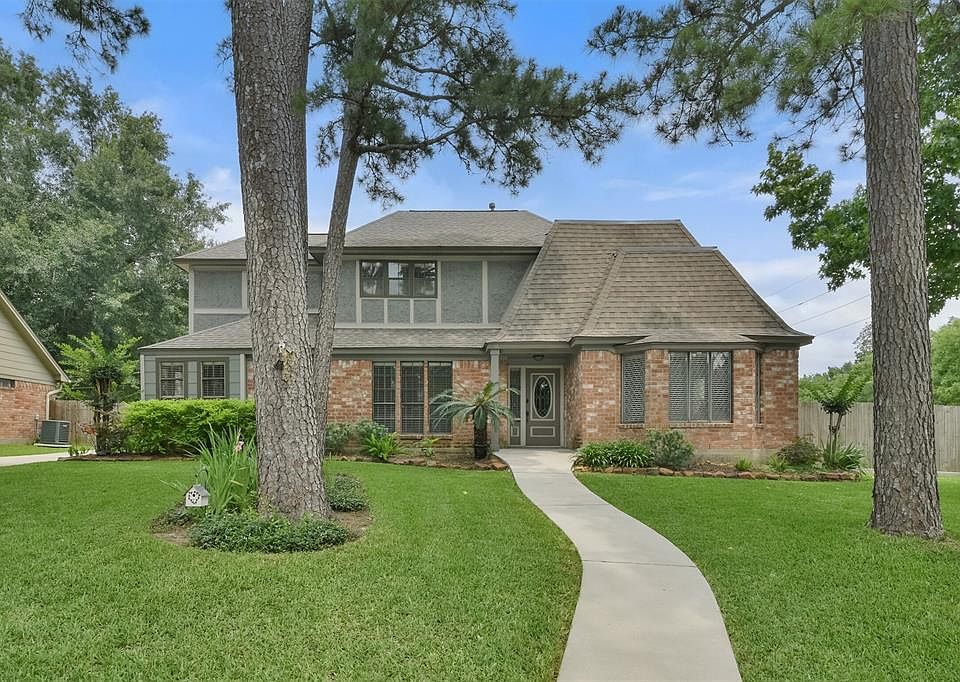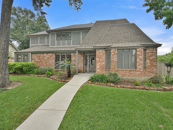 Welcome to 17602 Moss Point Dr, a beautifully maintained home situated on a 1/2 acre lot in Terranova West. This two story boasts a spacious layout with 4 bedrooms & 2.5 baths, and a backyard oasis with a sparkling pool & spa. Features include upgraded wood-look tile throughout the 1st floor, renovated bathrooms, PEX re-pipe, fresh interior paint, 2" blinds & more. Upon entering is a flex room that would make a great home office or formal dining room. The kitchen has abundant cabinet space, a center island, granite countertops, travertine backsplash, undercabinet lighting, stainless steel double ovens & adjoining breakfast room. Brick fireplace, built-ins, wet bar & rich wood paneling in the large family room. 1st floor primary suite with an oversized walk-in shower, gorgeous finishes & dual walk-in closets. Upstairs gameroom with built in wet-bar. Beautiful pool & spa with rock waterfall, covered patio & tons of green space in the backyard. Don't miss this one!