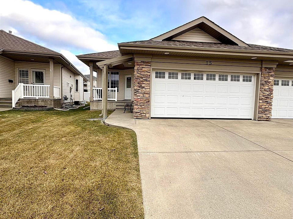 This beautiful well cared for bungalow half duplex is located in the well maintained adult complex of Castlebrook Village. Built by Heredity Homes, this original owner home is fully finished with well laid out living space. Main floor 9’ ceilings with crown molding throughout. Large kitchen with oak cabinets, corner storage pantry and centre island with breakfast bar. The patio doors lead to a private east facing deck. Relax in the large living room with a corner natural gas fireplace. Primary bedroom with 3 pc ensuite & walk in closet, a second bedroom/flex room at the front of the home, 4-piece bathroom and stackable laundry closet complete the main floor. Lower level features a huge family room, 2 large bedrooms and another 4-piece bathroom. New hot water tank and water softener system. The exterior has a covered front porch & a beautiful private yard. Oversized insulated double attached garage for parking and storage. Located close to shopping, transit and easy access to the Anthony Henday.