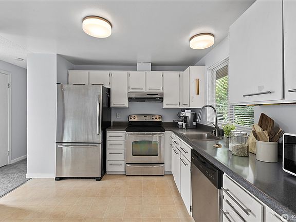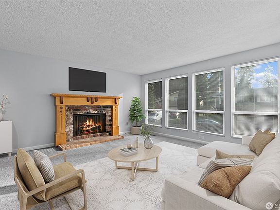 Welcome to this charming split-entry home in a peaceful Bothell neighborhood! With 3 bedrooms, 2.25 baths, and 1,658 sq ft of living space. The main level features a cozy fireplace, open living and dining areas, and access to a spacious multilevel Trex deck with awning overlooking a nearly .25 acre backyard - perfect for year-round entertaining or gardening. Downstairs includes a second fireplace and flexible space for a family room or office. Recent updates include a newer roof, new windows throughout and sliding door, brand new carpet throughout, and updated gutters. Enjoy easy access to Bothell-Everett Highway, Mill Creek amenities and nature trails. T