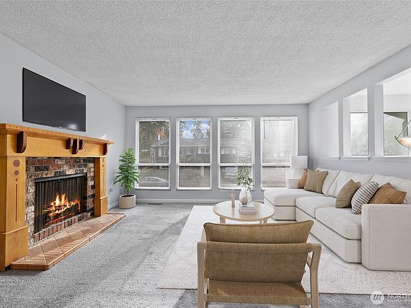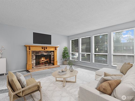Welcome to this charming split-entry home in a peaceful Bothell neighborhood! With 3 bedrooms, 2.25 baths, and 1,658 sq ft of living space. The main level features a cozy fireplace, open living and dining areas, and access to a spacious multilevel Trex deck with awning overlooking a nearly .25 acre backyard - perfect for year-round entertaining or gardening. Downstairs includes a second fireplace and flexible space for a family room or office. Recent updates include a newer roof, new windows throughout and sliding door, brand new carpet throughout, and updated gutters. Enjoy easy access to Bothell-Everett Highway, Mill Creek amenities and nature trails. This move-in ready home has been pre-inspected for your peace of mind. Virtually staged.
