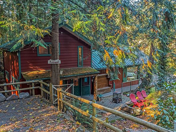 Welcome to this captivating Lewis River waterfront home in Battle Ground! Experience the year-round enchantment of the East Fork's soothing sounds and catch glimpses of bald eagles and steelhead from your back deck. This retreat has two spacious bedrooms, an open layout with vaulted wood ceilings, and expansive windows offering a stunning river panorama. Enjoy ultimate relaxation on the covered deck in a serene, private neighborhood. The property features a fridge, newer high-efficiency washer & dryer, and a new double-lofted artist studio or charming woodsy she-shed. Riverbend Cabin has served as a successful short-term rental and family vacation retreat, generating substantial income ($50k in 2021, $40k in 2022). Just minutes away, you'll find town amenities, wineries, and breathtaking falls, as well as an array of outdoor activities like hiking, kayaking, and summer tubing. Plus, explore Ape Caves, Lake Merwin, Yale Lake, Swift Reservoir, and Mt. St. Helens - all within an hour's drive. This tranquil haven is ready to welcome you home just in time for the holidays!