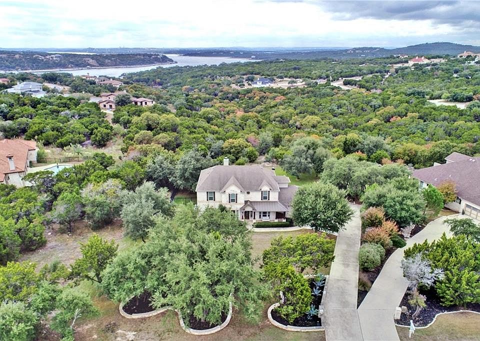 Gorgeous hill country home on over an acre w/ panoramic hill country, lake views, soaring ceilings, & ample natural light. Master suite is on 1st floor with over-sized garden tub & walk-in shower. This home is ideal for entertaining w/ an upstairs loft/game room, office, media room, & private balcony that gives a phenomenal view of Lake Travis. It gets better, w/ an outdoor stone patio that is breath taking & features a built-in kitchen, massive wood burning fireplace, pergola, and storage shed.
