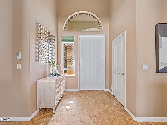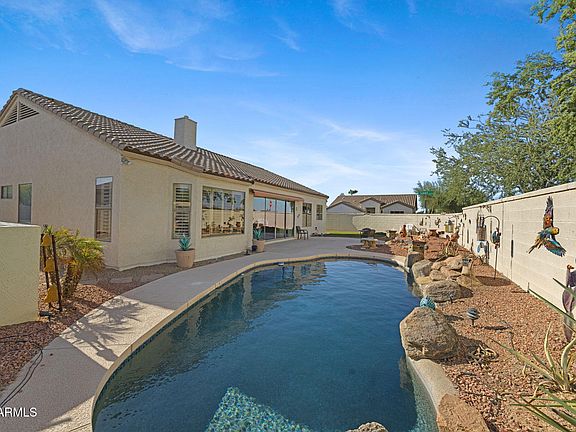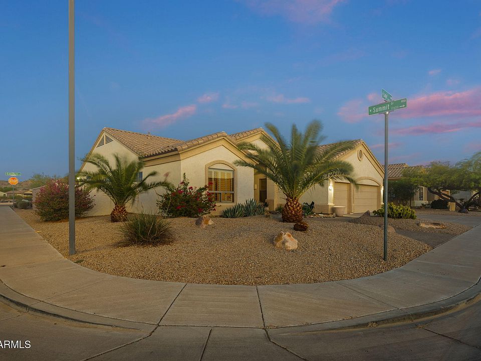 Beautifully maintained single-story residence situated on a coveted corner lot in Estrella Mountain Ranch—a distinguished community graced with scenic lakes, majestic mountain views, and winding walking and biking paths. The open-concept floor plan features a cozy fireplace, elegant art niches, and a generously sized kitchen with a grand island, electric cooktop, and abundant cabinetry. The primary suite offers a serene retreat with a soaking tub, separate shower, dual vanities, and a spacious walk-in closet. Two additional bedrooms are bright and private. Step through double sliders to a landscaped backyard boasting an enclosed sunroom and inviting pool. Ceiling fans, sun screens throughout, built-in garage cabinets, and a three-car garage complete this exquisite home. Estrella Mountain Ranch offers a truly unique desert lifestyle with resort-style amenities set against the backdrop of the Estrella Mountains. Including the Golf Club of Estrella, a Nicklaus Design golf course. Enjoy two picturesque lakes surrounded by paved walking and biking paths, perfect for morning jogs or evening strolls. The community features two stunning clubhouses with pools, fitness centers, and gathering spaces. At the Estrella Yacht Club, residents have access to kayaks, canoes, and paddle boatsideal for soaking in the beauty of this lakeside setting. Whether you're exploring miles of trails or relaxing poolside, Estrella delivers an active lifestyle of recreation, connection, and natural beauty.