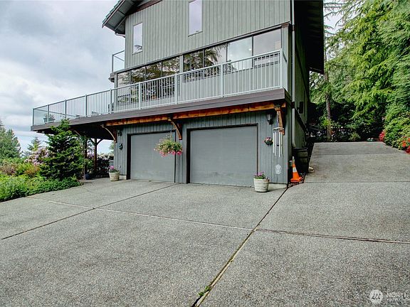 Picture yourself coming home to a custom-built home that not only has outstanding westerly views from every window, but the landscaping is exquisite & beautifully cared for in this private setting. Everything has been redone including the stone fireplace in the lovely living room. New kitchen with slate & tile, walk in pantry, built in desk & lots of windows. Large deck off dining area. Set apart den can be 2nd living room. Upper level with spacious primary, 5 piece bath, walk in closet & sitting room/office. Downstairs has 2 bedrooms, one with a Murphy bed, & a 3rd, large room with a closet for projects. Roomy garage has storage & deep sink. Storage shed hidden from view, First time on market so don't let it slip through your fingers!