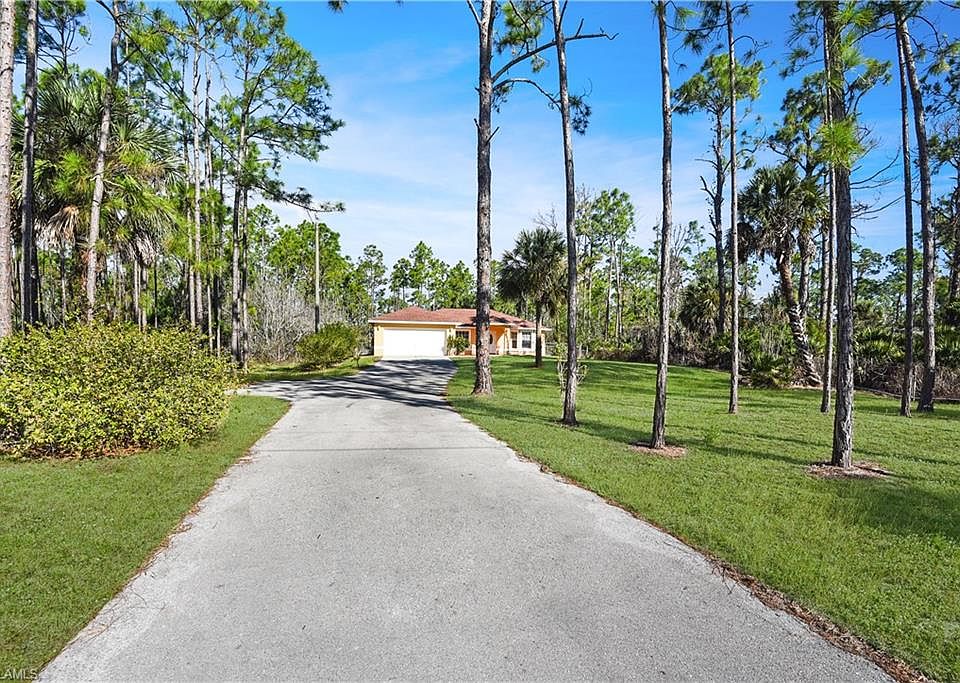 Single family home on over 1 acre of land! Enjoy being in a peaceful setting surrounded by an "Old Florida" feel with plenty of room for everyone including all of your toys, yet still live close to all of the conveniences of city life. This home, offering almost 1,300 sq. ft. of living space, is situated in a non-gated neighborhood on 1.14 acres with the rear yard being completely fenced-in. Cathedral ceiling in the great room, split bedroom floor plan, tile throughout including on the screened lanai, updated kitchen with wood cabinets & granite countertops, fruit trees, freshly painted inside & out, French door to the lanai, and plenty of storage are just some of the reasons you will love this home. The master bedroom features a door to the screened lanai and a large walk-in closet, and one of the guest rooms features a bay window overlooking the private front yard. The a/c unit is only 8 years old, and the dryer was purchased in 2016. With few restrictions in this area of Naples, you can put in a pool or park your boat and rv without any limitations. Conveniently located with easy access to I-75 and close to the Publix plaza with lots of shopping & dining options.