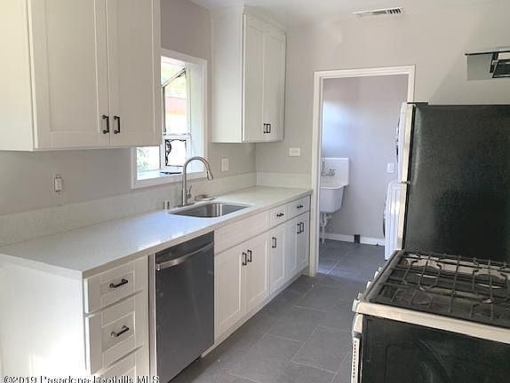 Charming traditional home is located in quiet cul de sac in the much sought after Verdugo Woodlands of Glendale. The front yard is landscaped and the exterior has been painted. Enter through a red door into a living room is bright with built ins. Brand new kitchen has new cabinets and stone counter and stainless dishwasher. It already has a stainless fridge and stainless stove and a breakfast area. There is a laundry room with newer washer & dryer and additional storage. Stunningly elegant bathroom has been updated with white Carrera marble shower and floors, newer sink, toilet, light fixture, and medicine cabinet. Bedrooms are bright. Back yard has a lovely patio with wooden trellis. The home has been freshly painted with refinished wood floors throughout and updated windows. There is central air conditioning. What a perfect gem!