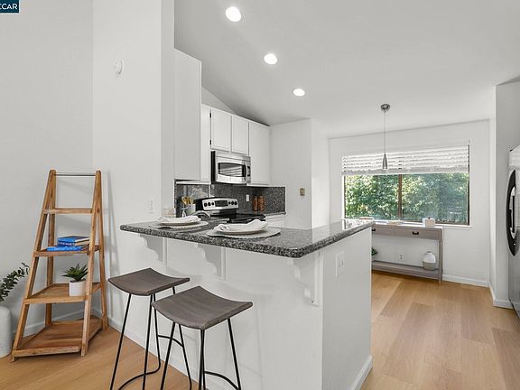 Come check out this newly updated 2 bedroom, 2 bathroom townhouse style condo located walking distance from downtown Walnut Creek. Garage parking, in unit laundry and 1,134 sqft of living space. High vaulted ceilings, granite counters, new LVP, carpet, paint, light fixtures and fire place tile gives the property a clean and modern look. In addition to the renovations inside, the unit also has a newly installed HVAC system. The complex has a pool, sun terrace, landscaped pathways and is close to downtown, a park, bike path and top rated schools.