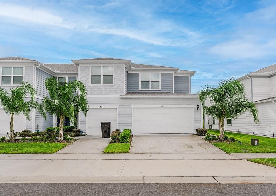 Corner unit 3 bedroom townhome in Belle Haven, Davenport. Prime location near Hwy 27 & Ronald Reagan Pkwy with easy access to I-4, shopping, dining, and attractions. Features tile flooring on main level and wet areas, stainless steel appliances, open-concept living, and guest half-bath. Rare dual garages + private driveway. Private patio and yard. Upstairs: spacious primary suite with walk-in closet, dual vanities, shower, and enclosed toilet; plus 2 bedrooms, full bath, and laundry closet with washer/dryer. The community offers a great pool and amenities.