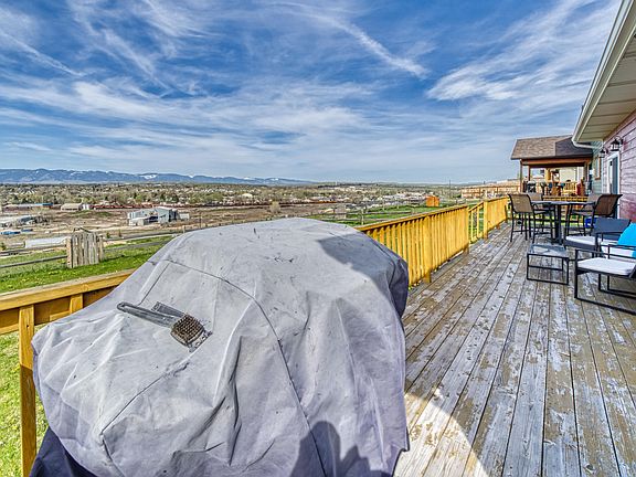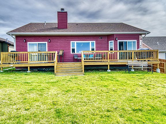 Spacious home with rich modern finishes: open floor plan with contemporary distressed cabinets, large island with granite counter top, wood plank ceramic tile floors, dark pine doors & trim, real wood fireplace, expansive family room in basement, and a large back deck with panoramic views of Sheridan & the Big Horn Mountains. All measurements are approximate. Don't forget to check out the virtual tour.