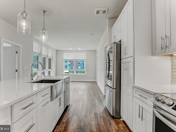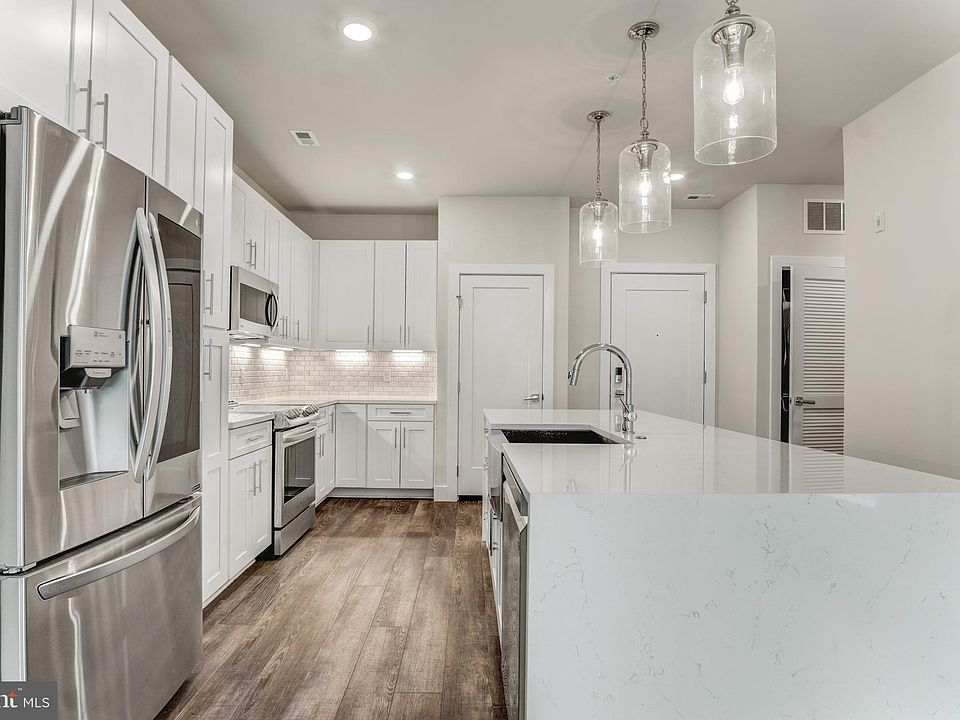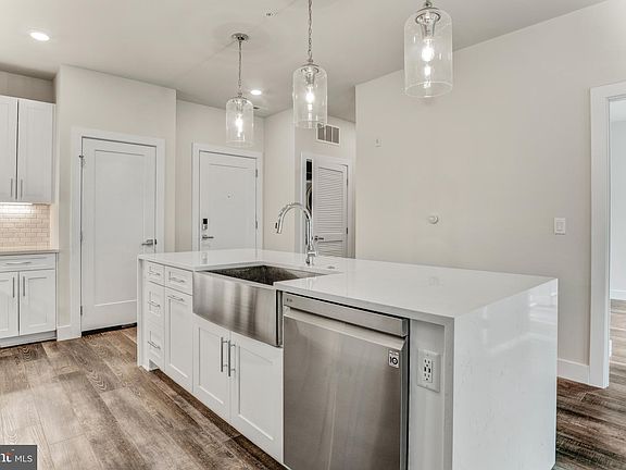 Urban elegance and practical comfort converge at 1761 Old Meadow Road #209 a stylish 2-bedroom, 1.5-bathroom condo in the heart of Tysons. Thoughtfully designed with high-end finishes, abundant natural light, and access to resort-style amenities, this residence pairs everyday ease with refined modern living. The main level welcomes with wide-plank hardwood floors, an open-concept layout, and large windows with custom blinds. The kitchen blends form and function with white Shaker-style cabinetry, quartz countertops, a waterfall island, white subway tile backsplash, and an LG stainless steel appliance suite including French-door refrigerator, range, microwave, and dishwasher. A stainless farmhouse sink, under-cabinet lighting, and island pendant lights complete the space. The adjacent living and dining areas flow directly to the private balcony with composite decking, ideal for indoor-outdoor living. A stylish powder room, in-unit Electrolux washer/dryer, and utility closet with ProLine water heater add convenience. The spacious primary bedroom features a walk-in closet with built-ins and large windows. The en-suite bath offers a dual-sink vanity with quartz counters, a frameless walk-in shower with designer tile surround, and chrome fixtures. The secondary bedroom includes double-door closet storage and access to a hall bath with quartz vanity and tiled tub/shower combo. Enjoy a full suite of building amenities, including secured entry, Amazon locker mailroom, a resident lounge with fireplace and catering kitchen, a fitness center, rooftop park, outdoor terrace with grill stations, and landscaped walking paths. Close by are the Silver Line Metro, Capital One Center, Safeway Shopping Center, Tysons Corner, and major commuter routes offering unmatched access to shopping, dining, fitness, and entertainment. This is connected, low-maintenance living at its finest.