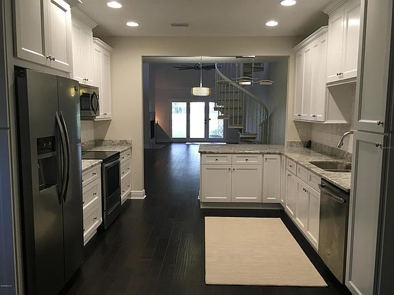 This unit was built in 1982 but extensively remodeled in 2019. It has that new home feeling! One of the most attractive townhomes in Ocala with a covered courtyard to enjoy the picturesque fountain a short distance away. High ceilings in spacious great room with a beautiful fireplace. Kitchen boasts granite counter tops, stainless steel appliances, state of the art lighting fixtures throughout. Rich wood flooring. New circular stairs to loft area. Downstairs has a wood ceiling and tile flooring perfect for entertaining. Top location near restaurants, stores and medical offices and a short drive between the Gulf of Mexico and the Atlantic Ocean. Guardhouse at entrance, community pool and exterior maintenance are included. Truly a must see!