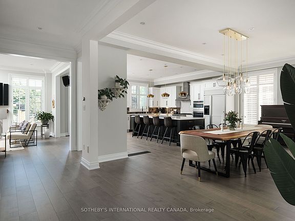 Set on a 265 foot deep lovingly landscaped lot, this refined residence offers resort-style living combined with cool loft-like entertaining space. 10-ft ceilings, Reno'd chef's gourmet kitchen, fab dining island, living room with gas fireplace, office, powder room and laundry fill the main floor with direct garage access. Sunny terrace lounge of kitchen great for BBQ, shaded alfresco private dining pavilion, spectacular pool, lush perrenial gardens, 2 attractive sheds, garden patch in fully fenced private oasis. Four spacious bedrooms with ensuites include primary retreat with double-door entry, 2 W/I closets and 5 piece. A double-height, three-car insulated garage blends seamlessly into the homes timeless architecture. Fully finished lower level has a music room, gym and family room, rough in bathroom, storage. Nest Home Security, exterior cameras, built-in Celebright Lighting (so cool), and Cat5 wiring, give you security, high-speed data, and festive sparkle in the palm of your hand. Minutes to schools, Rouge Valley trails, shopping, restaurants, with easy access to GO Train, 401 and Kingston Road for dual downtown routes. Turn key, beautifully maintained, family home.