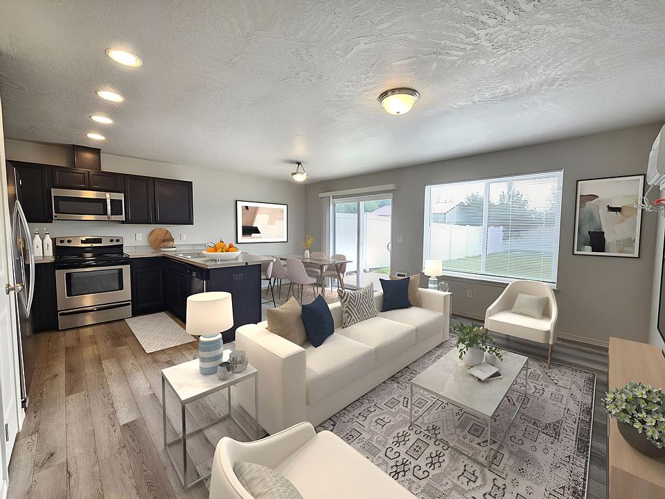 Open kitchenFlooded with natural lightSpacious primary bedroomWalk-in closetPrivate bathroomGorgeous laminate flooringEating peninsula