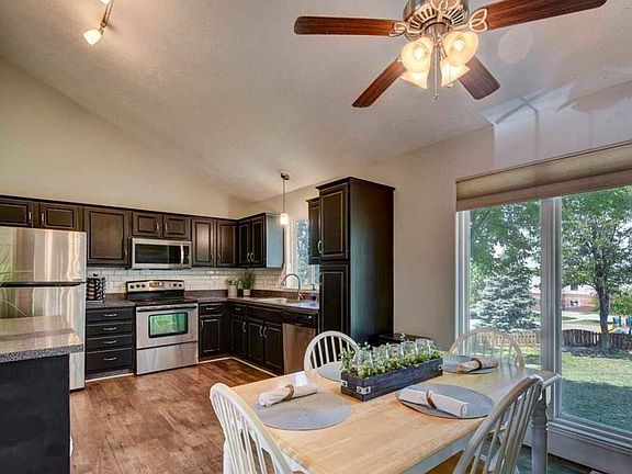 This beautiful multilevel home is located on an awesome cul-de-sac backing up to Rowher Elementary School. Cathedral ceilings in living room, kitchen and dining area. LVP flooring on the main level with a very open floor plan. Neutral tones throughout the home. The kitchen boasts of granite-like countertops, farmhouse sink, dark cabinets and stainless steel appliances. Spacious family room with fireplace flows onto large patio perfect for entertaining. The master bedroom has a walk-in closet and master bath which has a gorgeous slate tile shower. Finished lower level and half bath. The fenced in yard is complete with mature trees and a gate opening to the school. The 2 car garage plus bonus space complete this stunning home! Available Feb 1, 2023. Renter responsible for trash, MUD OPPD lawn care and snow removal Dogs allowed 300.00 non refundable pet deposit 40.00 per month pet rent $40.00 application fee per person Washer and dryer hook up