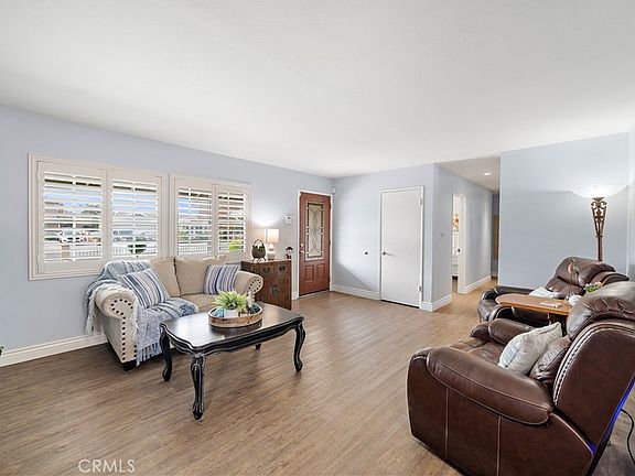 Absolutely stunning and extraordinarily rare, this expanded Dutch Haven Marina single-story home offers an impressive 2,114 square feet of beautifully upgraded, open-flowing living space that radiates warmth, sophistication, and modern comfort at every turn. From the moment you arrive, the charming curb appeal captures your attention with its lush green lawn, flowering gardens, new white vinyl fencing, wide sweeping driveway, and welcoming brick porch with patio cover, and upon entering through the custom beveled-glass front door you are greeted by an elegant formal living room showcasing a slate fireplace and a host of remarkable upgrades including central A/C with Nest programmable thermostat, paid solar, tankless water heater, newer luxury wood-vinyl flooring, dual pane windows, plantation shutters, recessed lighting, ceiling fans, crown molding, tall baseboards, raised-panel interior doors, designer paint, custom window and door casements, and French doors with built-in mini blinds. The expansive additions to this home created an impressive family room with formal dining space and transformed the primary suite into a true retreat complete with a sitting area, French doors to the backyard, a custom-organized walk-in closet, and a spa-inspired bathroom featuring an oversized soaking tub, separate multi-head shower with bench, beautiful carved-wood dual-sink vanity with matching mirrors, glass-block accents, and private water closet. The completely remodeled chef’s kitchen is a showpiece with granite countertops, custom white shaker cabinetry with pullouts, coffered ceilings with extensive recessed lighting, stainless steel appliances including a 5-burner double-oven gas range, microwave, and dishwasher, deep stainless sinks, two breakfast bars, and a convenient inside laundry niche. There are two lovely secondary bedrooms and a guest bath with new tile flooring, dual sinks, and a tiled tub/shower. The low-maintenance backyard offers immaculate hardscape with interlocking pavers, concrete wrap-around patios, and block-wall fencing, while the finished garage impresses with a 220V/30AMP EV outlet, workbench, extensive built-in cabinetry, and new side-mount garage door opener; all of this is located in a highly desirable neighborhood just moments from neighborhood parks, the Bolsa Chica Wetlands, the beach, shopping, dining, and award-winning schools—an exceptionally spacious and beautifully curated home that rarely becomes available.