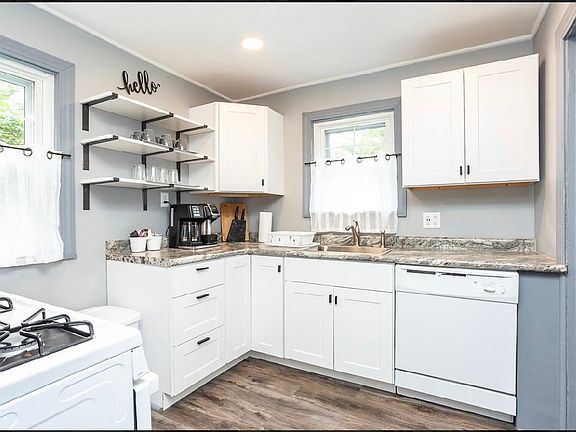 Two bedrooms upstairsCompletely renovated kitchenOutdoor seatingTwin over full bunkEnclosed porchPlenty of green space