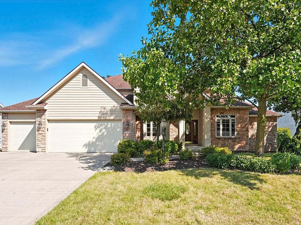 Custom built by Art Bunt, this stunning 4 bedroom, 4.5 bath home is nestled on a private lot in Leo. Thoughtfully designed, the home blends quality craftsmanship with spacious, comfortable living areas perfect for both everyday life and entertaining. The main floor features a Primary Suite, Private Office, Formal Dining/Flex Room, Breakfast Nook, and welcoming hearth area. Vaulted ceilings enhance the open feel and fill the home with natural light. Upstairs, you’ll find a private bedroom suite along with two additional bedrooms and a full bath—ideal for family or guests. The finished lower level is an entertainer’s dream with a wet bar, large rec room, and three versatile flex rooms that can serve as a craft area, home gym, media room, or playroom. Step outside to enjoy the peaceful setting with a spacious deck—perfect for outdoor dining, grilling, or simply relaxing on a lot with mature trees and privacy. Seller escrowing funds for a NEW ROOF per attached quote PLUS providing 3% towards the buyer’s closing costs.