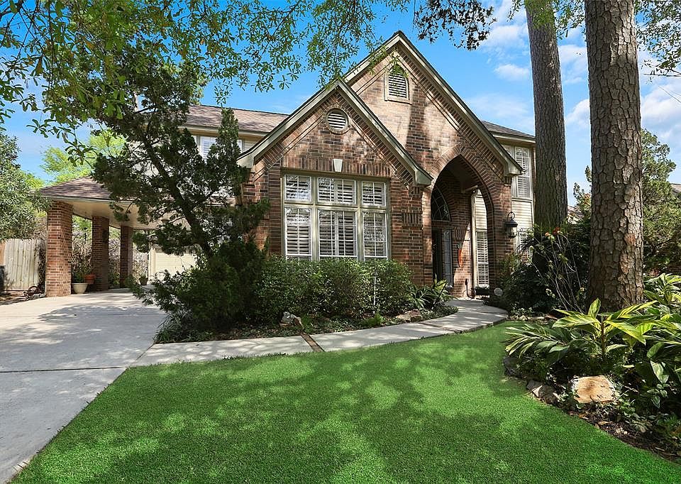 Amazing 4 bedroom home sits on a cul-de-sac street with a fabulous backyard oasis with sparkling pool and spa zoned to the exemplary Klein ISD in the very popular subdivision of Terranova West! This home features a beautiful formal dining room with high ceilings, crown molding, tile floor and plantation shutters, study with built-ins, tile floor and plantation shutters, huge den with gorgeous gaslog brick fireplace, a chef's dream island kitchen with lots of counterspace and cabinets and huge master suite down with updated master bath! Upstairs there is a fabulous gameroom with built-ins, 3 large bedrooms and 2 full bathrooms! The backyard has a wonderful patio, grass area, an orange tree and a large storage shed. The 2-car garage is oversized with cabinets and a window AC unit. The carport is an added bonus to this beautiful home!