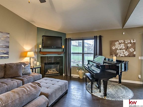 Ranch living awaits in popular Sagewood! This stunning home will win you over with it's vaulted ceilings, beautiful wood floors, and open design. The kitchen overlooks the large living room with fireplace. The master bedroom is spacious and has it's own 3/4 bath with dual sinks. Lower level features a 4th bedroom, plus the bonus of a large rec room ready for movie night or entertaining. (Movie screen stays!) Outdoors, you'll discover a wonderful patio, fire pit and built in benches, perfect for enjoying summer days and nights! Put this one on your Must See List!