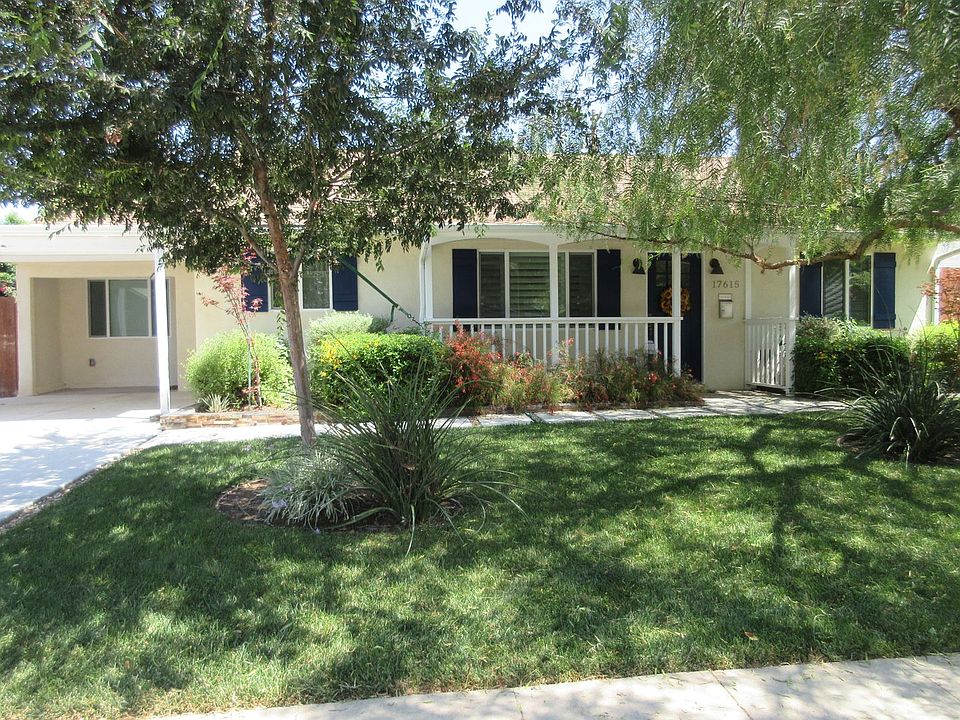 This beautifully updated 3 bedroom and 2 bath home blends traditional charm with contemporary elements. When you walk in you are welcomed to an amazing open floor plan with a large, bright airy living area and double sliding glass doors leading to a landscaped backyard where you can enjoy cozy evenings around the block fire pit, ideal for relaxing or entertaining. The remodeled gorgeous kitchen has stainless steel appliances and a single-basin farm-style sink. The primary bedroom is a peaceful retreat, featuring private access to the backyard through its own sliding glass door. The remodeled en-suite bathroom showcases a stylish barn door and includes a convenient enclosed area with a stackable washer and dryer (non-warranted) for your use. Property comes with a non-warranted refrigerator and wine cooler for your use. Carport with EV charger. Gardener included