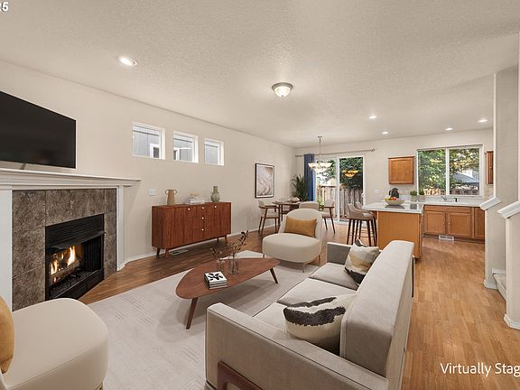 Open concept living a few minutes from Nike! Enjoy a functional floor plan with living room, kitchen, and dining on main level. A large kitchen island sets the stage for your culinary creations, while the sliding glass doors provide access to a spacious concrete patio and entertainment possibilities. Settle in next to the gas fireplace with your favorite warm beverage. Large primary bedroom features vaulted ceilings and ensuite bath with double vanity and walk-in closet. Recent updates include: brand new roof as of August 2025; exterior painted in 2024; new stainless steel refrigerator. All appliances included! Floors and carpets deep cleaned in October '25. Easy access to parks, Intel, Max, and more.