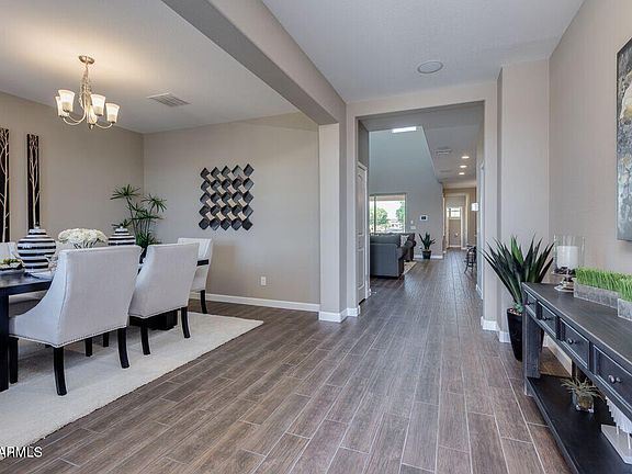This Gorgeous NEW home has so much to offer! Primary bedroom on the 1st floor 3,222 square feet, 4 bedrooms, 3.5 bathrooms, loft, media room, and a 3 car tandem garage! Did we mention it's a Cul De Sac Lot? Est to close July. This home features 36'' white shaker cabinetry, 18x18 tile, a large kitchen island, quartz counter tops, and 9' ceilings throughout. It also includes a soft water loop, dual pane low-E windows, multi-zone thermostat, window coverings and a smart home system. The exterior features front desert landscaping, a covered patio and generous backyard. Conveniently located off the 303, this community is near Costco, Safeway, and shopping. **Finishes may vary from sample photos and virtual tour.