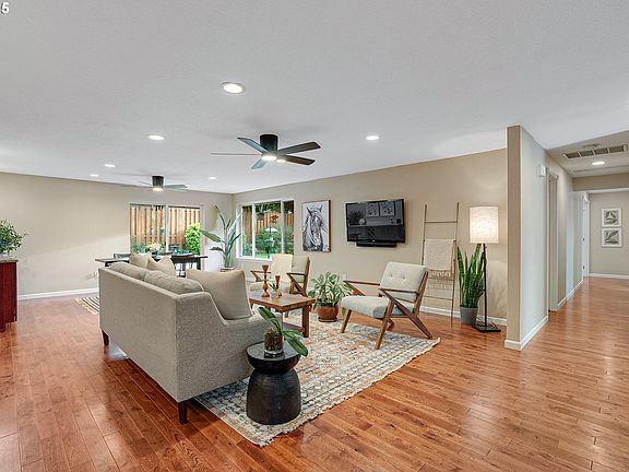 On the market for the first time in 25 years, this charming Beaverton ranch is a turn-key gem. Extensively renovated from top to bottom, this 3 bed + 2 bath home was thoughtfully designed with care and intention—creating a warm, welcoming space that lives beautifully today. From the airy entry to the open living room, every detail flows seamlessly for both everyday comfort and effortless entertaining. Stunning hardwood floors run through the main living areas, while fresh, plush carpet brings softness to the bedrooms. The custom kitchen is a total standout with its oversized island, granite counters, SS appliances, gas range, breakfast bar, and a massive walk-in pantry. Off the kitchen, a spacious laundry room offers bonus storage and utility. Down the hall you will find a private primary suite/quiet retreat with a cozy sitting area, walk-in tile shower, soaking tub, and a generous walk-in closet. Two additional bedrooms, both with ample closets, complete the layout—one with direct access to the hall bath. Outside, the fully fenced backyard is as inviting as it is functional, featuring mature landscaping, blooming roses, raised garden beds, and a covered workbench area perfect for gardening or weekend projects. Solar panels and a newer roof add to the home’s efficiency and peace of mind. Nestled in a quiet and desirable neighborhood, this home is just minutes from Mt. View Champions Park, Mt. Williams Park, Farmer’s Markets, and a variety of local shops and restaurants-making this charmer perfectly positioned for both comfort and convenience.