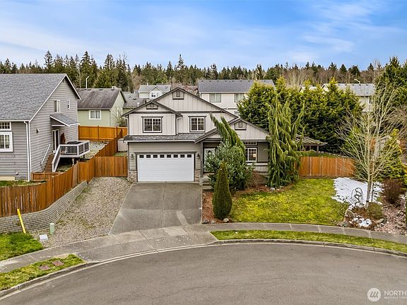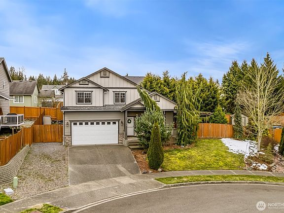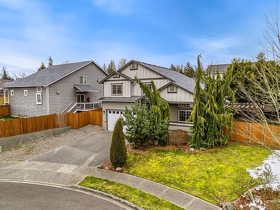 Welcome home to this highly desirable neighborhood Magnolia Meadows. An open floor plan with high ceilings, beautiful flooring throughout the main areas and plenty of space in the living room for entertaining guests. The gourmet kitchen is a great for hosting, with granite countertops, lots of cabinet space and a coinvent bar top with seating ideal for casual meals. The spacious primary suite is complete with vaulted ceilings, a full bath, and a generous walk-in closet with custom built-ins. Two additional well-sized bedrooms offer ample space for guests. Central A/C to cool down during summer months. Fully fenced backyard with firepit and a shed. Close to downtown Arlington, I5 and Hwy9.