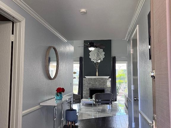 Discover an exceptional opportunity to reside in this pristine single-story home within the highly sought-after Tustin Meadow Community. This rare open floor concept house boasts an inviting and spacious layout. The home features a bright living room with large picture windows, a newly remodeled fireplace, and updated flooring throughout. Freshly painted interiors add to the home's charm. The family room, seamlessly connected to an open kitchen, overlooks a beautifully manicured backyard. The remodeled kitchen includes granite counters, custom self-closing cabinets, and a built-in sitting area perfect for family gatherings, as well as a built-in office space ideal for working from home. The master bathroom has been upgraded with custom tile work, dual shower heads, and the second bathroom features a deep bathtub. The home also includes newer vinyl windows and sliding doors, cathedral ceilings with crown molding, and a combination of tile and carpet flooring. Every window in the house offers a view of the lush greenery outside. The backyard is designed for entertaining, featuring a new vinyl fence and patio cover. The professionally landscaped Japanese-style garden in both the front and back yards includes a serene Koi pond, well-maintained trees, and bushes. Enjoy the harvest from mature nectarine, fig, banana and dragon fruit trees. Tustin Meadows offers a wealth of amenities including two clubhouses, BBQ areas, sports courts, walking trails, and numerous parks. The property is conveniently located near excellent dining, shopping, freeways, and schools, with easy access to The District and Tustin Market Place. This is your chance to live in a stunning single-story home in a vibrant and welcoming community! No pets. No smoking. Renter pays all utilities including trash service. Landlord pays HOA Deposit of $9,200 required for move-in. One year minimum lease signed, with possibility for extension. Tenant is responsible for renter's insurance. Tenant is responsible for appliance maintenance. Tenant is responsible for landscaping Tenant must provide proof of qualification prior to viewing by completing a Zillow application.