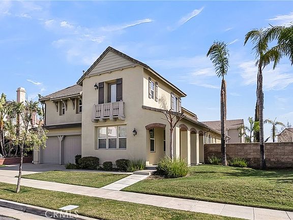 A TURNKEY HOME IN THE COLONIES! Ready to move into with new paint inside and out! Enter into arched doorways and soring ceilings with high end 6" Crown Molding throughout home. Beautiful Travertine flooring flows throughout the downstairs. A separate formal living room with plantation shuttered cathedral windows that provide lots of natural light. You will love this gourmet kitchen. The oversized island has a wraparound bar that is perfect for quick meals or snacks, plus there is an informal eating area. Newer stainless appliances which include double convection ovens, unused microwave and dishwasher, granite counters and back splash which flows into the butler's pantry. Plenty of custom cabinets which include a pot/pan drawer. Kitchen opens to spacious family room featuring fireplace & plantation shuttered window overlooking the patio. A downstairs bedroom and convenient full bath is perfect for guests and features a French door to the lush patio area. Downstairs also boasts a half bath for visitors. The matching custom cabinets continue upstairs in a built-in computer area. Primary bedroom features high ceiling with crown molding, lighted ceiling fan with lush carpet and a large walk-in closet. Primary bath has his/her sinks an oval tub with separate shower. The large secondary bedrooms have lush carpet and closet organizers. A convenient Jack N Jill bath with separate in tub shower. Upstairs laundry has soaking sink and added storage. A covered patio with stamped concrete, two new fans, a soothing water feature surrounded by lush landscaping. A large grass area is perfect for family play or potential pool. All of this is located in the sought after area of The Colonies, known for its parks, hiking trails, mountain views and walking distance The Colonies Crossroads Shops and restaurants. An easy commute, close to 210, 15, 60 and 10 freeways. Spacious 3 car tandem garage. Home has too many upgraded features to list. Must see!