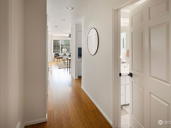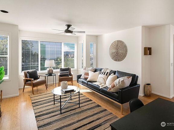 Flooded with light, this updated southwest corner unit is truly a gem. Located in the heart of Ballard with great restaurants, a year-round Farmer’s Market, grocery stores & several boutiques within blocks. This large condo offers an open floor plan with great entertaining spaces. The primary bedroom is a true ensuite with a huge walk-in closet & grand 5pc bath. The spacious 2nd bedroom is well appointed with direct access to a 3/4 bath. The big laundry room offers additional storage. Enjoy meals al fresco, rain or shine, under the covered balcony. HOA dues cover H20, Sewer, Garbage, Common area, gas for the fireplace, bldg INTERNET & CABLE! Well run HOA. Park your car in your designated spot because you won't need it living here!