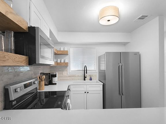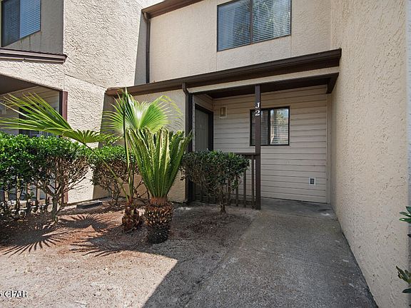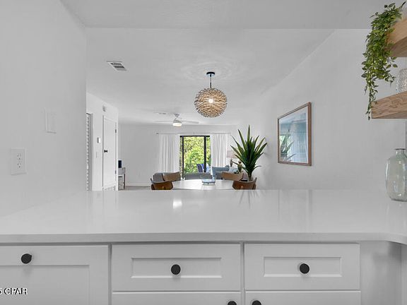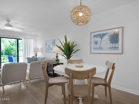 Welcome to Paradise! Newly renovated condo features modern coastal design with 2 spacious bedrooms and 1.5 baths nestled within the private Portside Resort. Boasts new cabinets quartz countertops stainless appliances LVP flooring throughout + more! Enjoy a secluded balcony off the primary bedroom a covered dining patio with storage adjacent the living area offering a serene spot for morning coffee. Steps from the beach savor the salt air shop and dine at the popular Pier Park only 2.5 miles. Portside is a 16-acre resort with 3 community pools (including a heated pool adjacent to the condo) tennis courts fitness center clubhouse and hot tub all set on the quiet West end amidst beautiful palms and tropical foliage. Seize this stunning property before it's gone!