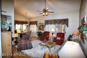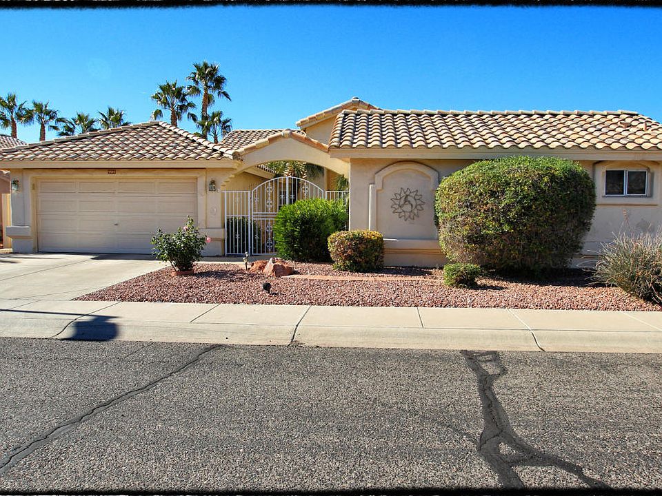 Amazing Santa Rosa model with guest Casita has it all. Start with the entry courtyard filled with lush tropical foliage. Enter through double doors into the arched, tiled foyer & take in the light filled great room. Laminate floors give it an air of distinction. Great light fixtures & ceiling fans too. The breakfast room has a built-in desk area, plantation shutters & additional pantry cupboard. Tons of kitchen cupboards, granite countertops, stainless sink & super appliances. Generous master bedroom & bath with access to covered patio. Second bedroom is roomy too with a Murphy bed for overflow guests. Remember that Casita with another full bath! The covered patio opens to a nicely landscaped yard filled with a variety of citrus, palms & blooming plants. Plenty of garage storage too!