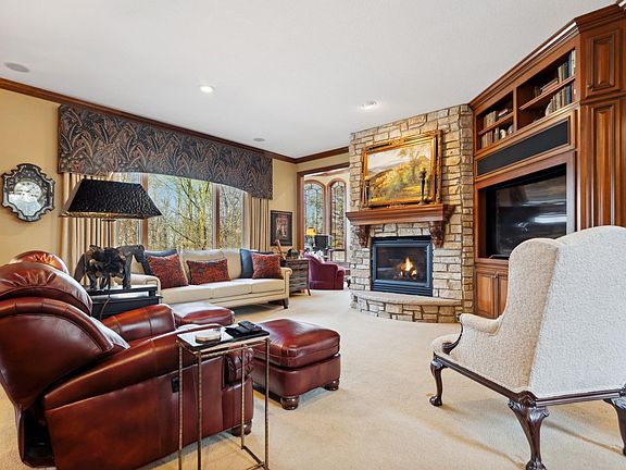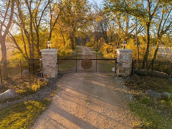 Private, Peaceful Setting with Beautiful Views! Custom one-owner home on 10 wooded acres (with more land available), featuring an elevator to all three levels, plus additional ensuite bedrooms—perfect for multigenerational living. Quality craftsmanship throughout with hand-formed brick, Arkansas River Rock exterior, 12-ft ceilings, and floor-to-ceiling windows. Gourmet kitchen with cherry cabinets, Sub-Zero/Wolf appliances, large granite island, and prep pantry. Hearth room with Colorado stone fireplace, elegant dining room, grand office, and sunroom overlooking the deck and expansive patio with outdoor kitchen and fireplace. Ideal for entertaining! Multiple office spaces. Luxurious owner’s suite with spa bath and heated floors, plus a versatile flex room. Walkout lower level includes a large granite bar, fireplace, heated stone floors, bedroom, exercise room, and storage. Like new and move-in ready! Easy access off Hwy 169 and only 37 minutes to MSP Airport.