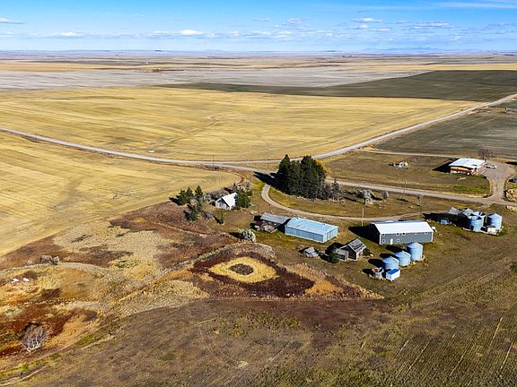 Discover this 2006 ultra-efficient 5-bedroom, 2-bath home on 40 scenic acres along Bootlegger Trail with open, Big Sky views. Featuring 4,450 sq. ft. of living space with vaulted ceilings, oak cabinetry, radiant baseboard heat, and an attached heated 800 sq. ft shop/garage, this home blends comfort and practicality. Includes (2) 1500-gallon cisterns, 1,000-gallon septic, and wired generator system for essential appliances and heat. Property boasts multiple outbuildings—steel barn with heated workshop, garages, older homes(one ready to be remodeled and finished), and grain bins(4 usable). There are 3 seasonal ponds on the property as well. Just 18.5 miles from Great Falls and across the gravel road from Benton Lake School, this peaceful country haven offers endless potential for a homestead, hobby farm, or rural retreat. So much s here...You have to tour it to appreciate all that is here!